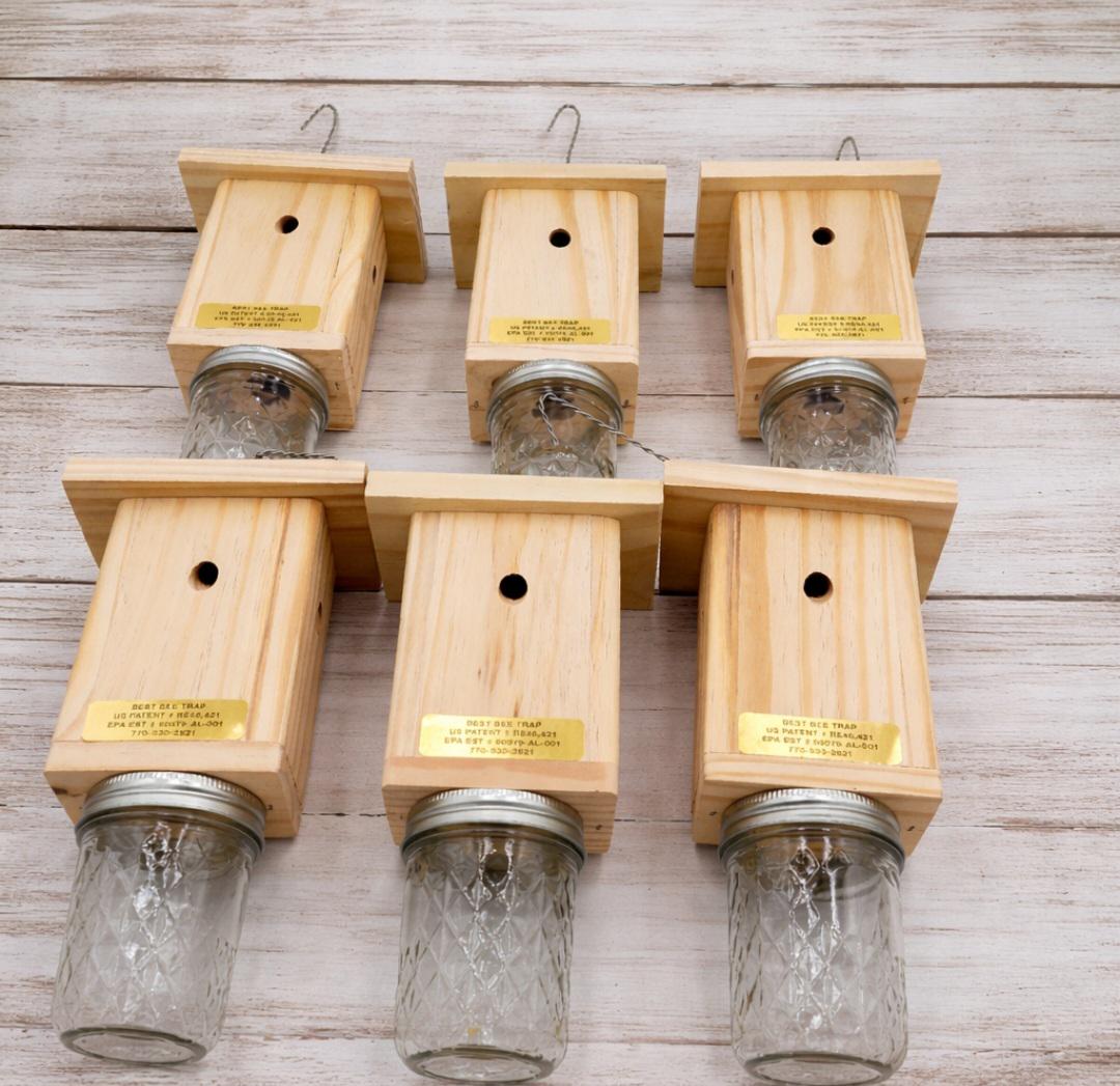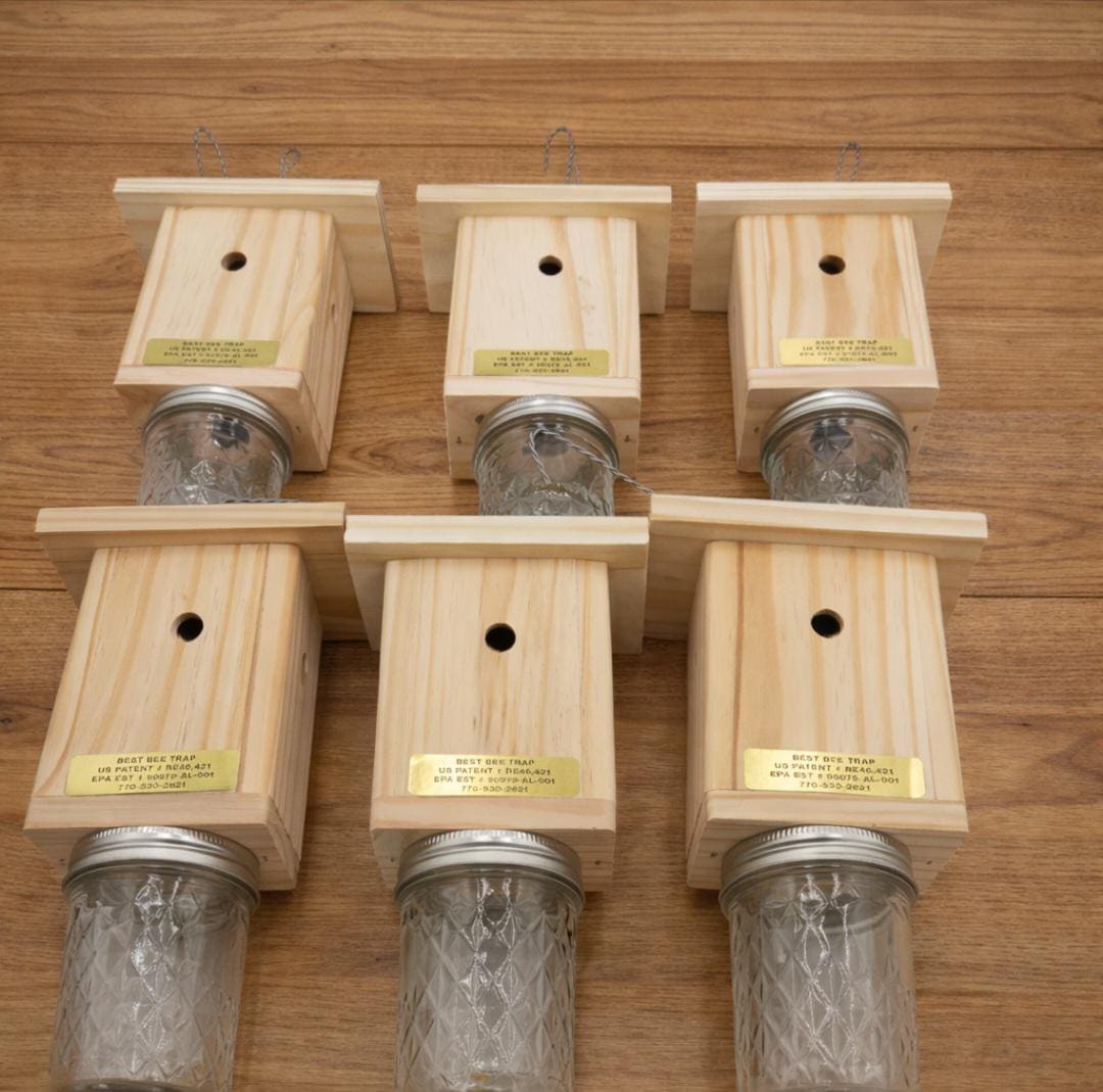 Protect your outdoor space from pesky carpenter bees with this set of 6 handmade traps. Made with pressure-treated wood, these traps are durable and effective. The design is specifically crafted to attract carpenter bees the natural way without using harmful chemicals. The traps are easy to set up and maintain. Each trap is carefully crafted with the highest quality materials and attention to detail. The pressure-treated wood ensures that the traps will withstand harsh outdoor conditions and last for years to come. Say goodbye to expensive pest control services and harmful chemicals. With this handmade set of traps, you can safely and effectively control carpenter bee populations around your home. U.S. Patent # RE46,421 - U.S. Trademark Reg. # 7,684,417